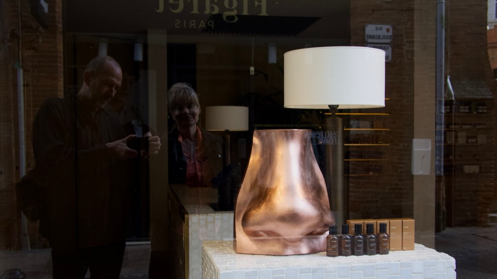 В Тулузе прекрасная погода: ветерок, днём было что-то около 20°Ц. Мы утром сходили в Saint-Etienne Cathedral, потом в Georges Bemberg’s Foundation, осмотрели Les Abattoirs (бессмысленный), вечером немного погуляли по улицам . Фотография утром в городе, какая-то парфюмерная витрина:
