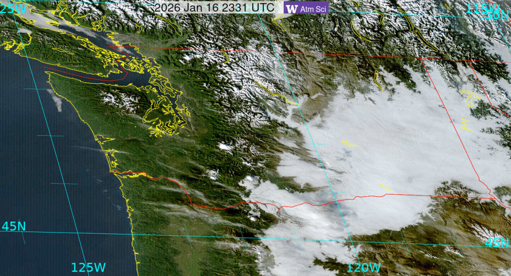 Фотография только спутниковая, на ней видно, что вся наша вчерашняя хмарь теперь на юго-востоке штата: